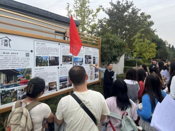 2025 年 10 月 29 日下午,湖北大学旅游学院邱海莲副教授、刘春燕博士携 2025 级 MTA 全体学生,走进 “东湖家” 旅游民宿集聚区开展户外实践教学,以实景课堂探索民宿标准化建设,特邀全国旅游民宿等级评定专家、集聚区创始人刘皑担任主讲嘉宾。